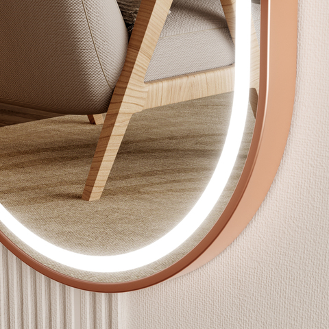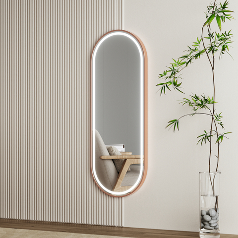 Espejo LED de longitud completa con Vestidor ovalado inteligente de salón multifuncional con marco de oro rosa
