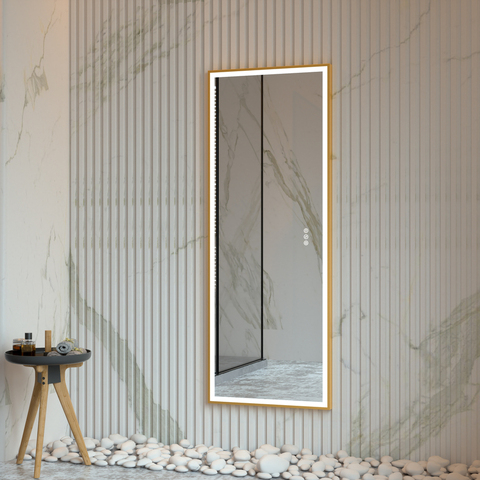 Interruptor de Sensor de luz delantera de 3 colores con marco dorado, espejo LED montado en la pared para baño, Hotel, tienda de ropa, salón